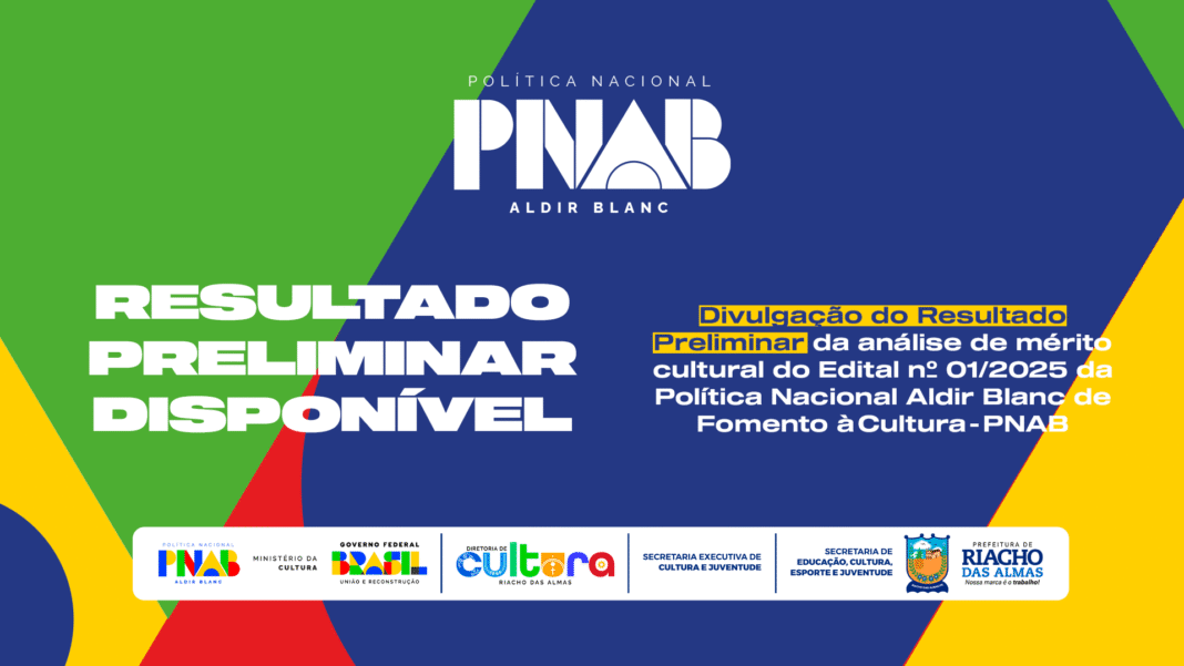 A Prefeitura de Riacho das Almas, por meio da Secretaria Executiva de Cultura e Juventude, divulgou nesta sexta-feira (9) o resultado preliminar da análise de mérito das propostas submetidas ao Edital nº 01/2025 – Fomento à Cultura Tita Sanfoneiro, com recursos da Política Nacional Aldir Blanc (Lei nº 14.399/2022).
