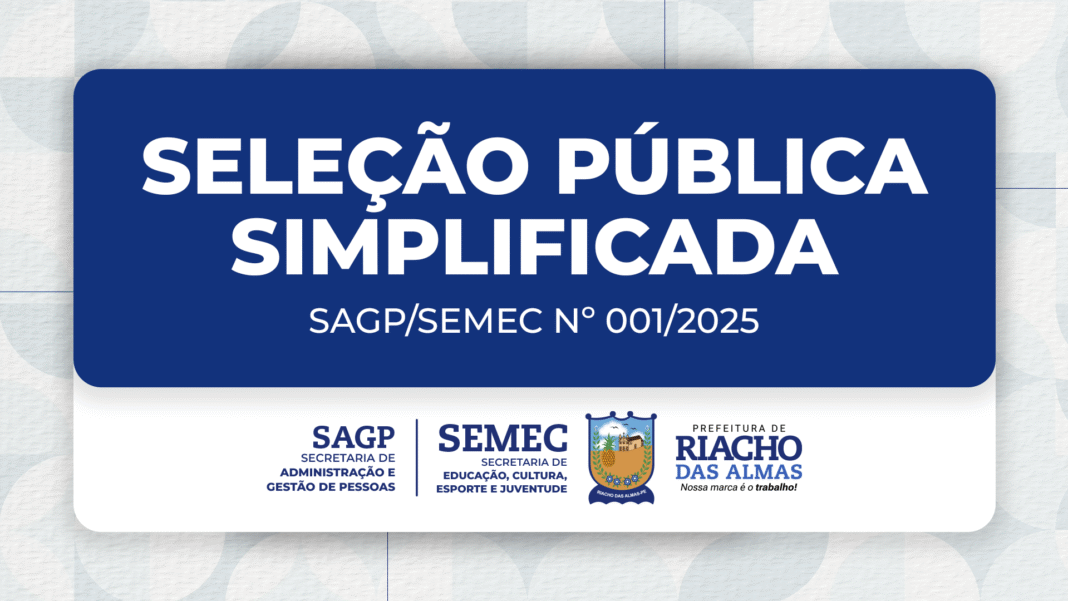 A Prefeitura de Riacho das Almas, por meio da Secretaria de Educação, Cultura, Esporte e Juventude (SEMEC), anuncia a abertura do edital de seleção para Profissional de Apoio Escolar. As inscrições estarão disponíveis de 19 a 30 de junho de 2025, podendo ser realizadas tanto de forma online, através deste link e presencialmente na sede da SEMEC.